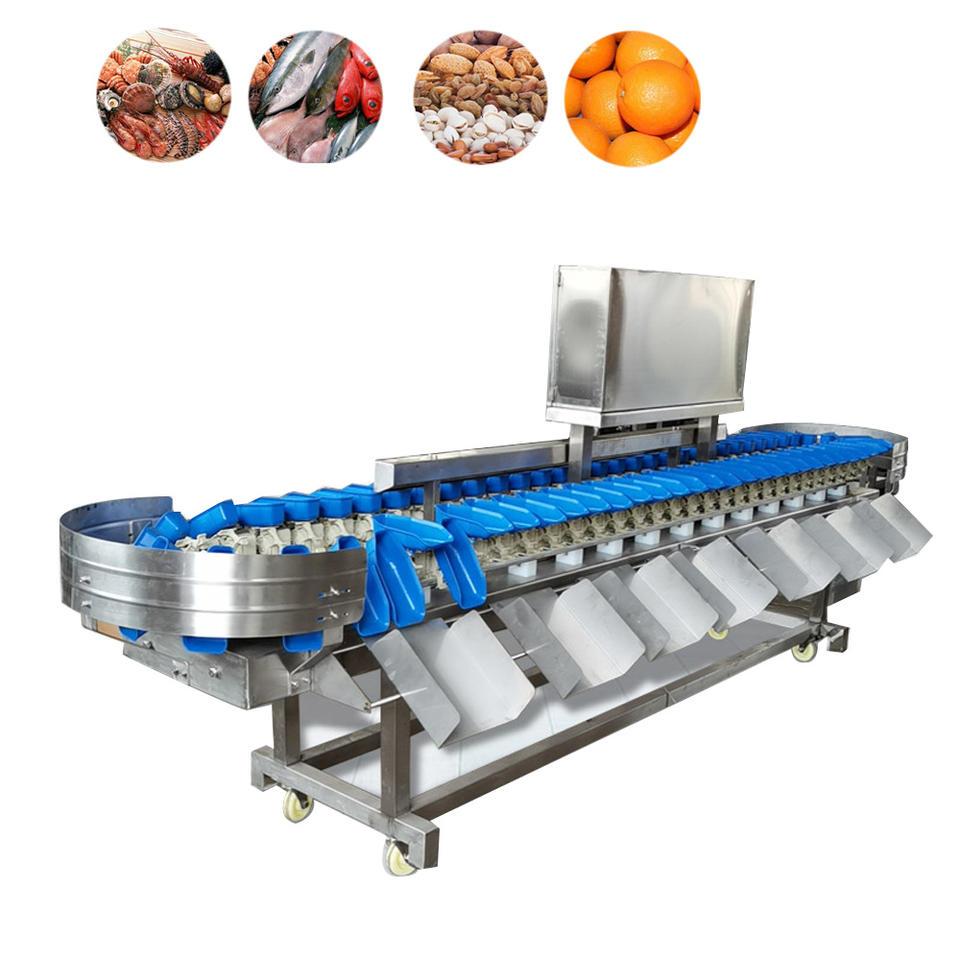 เครื่องคัดแยกน้ำหนักอัตโนมัติเต็มรูปแบบเครื่องคัดแยกคัดแยกแบบปีกหอยเชลล์ปีกไก่อาหารทะเล