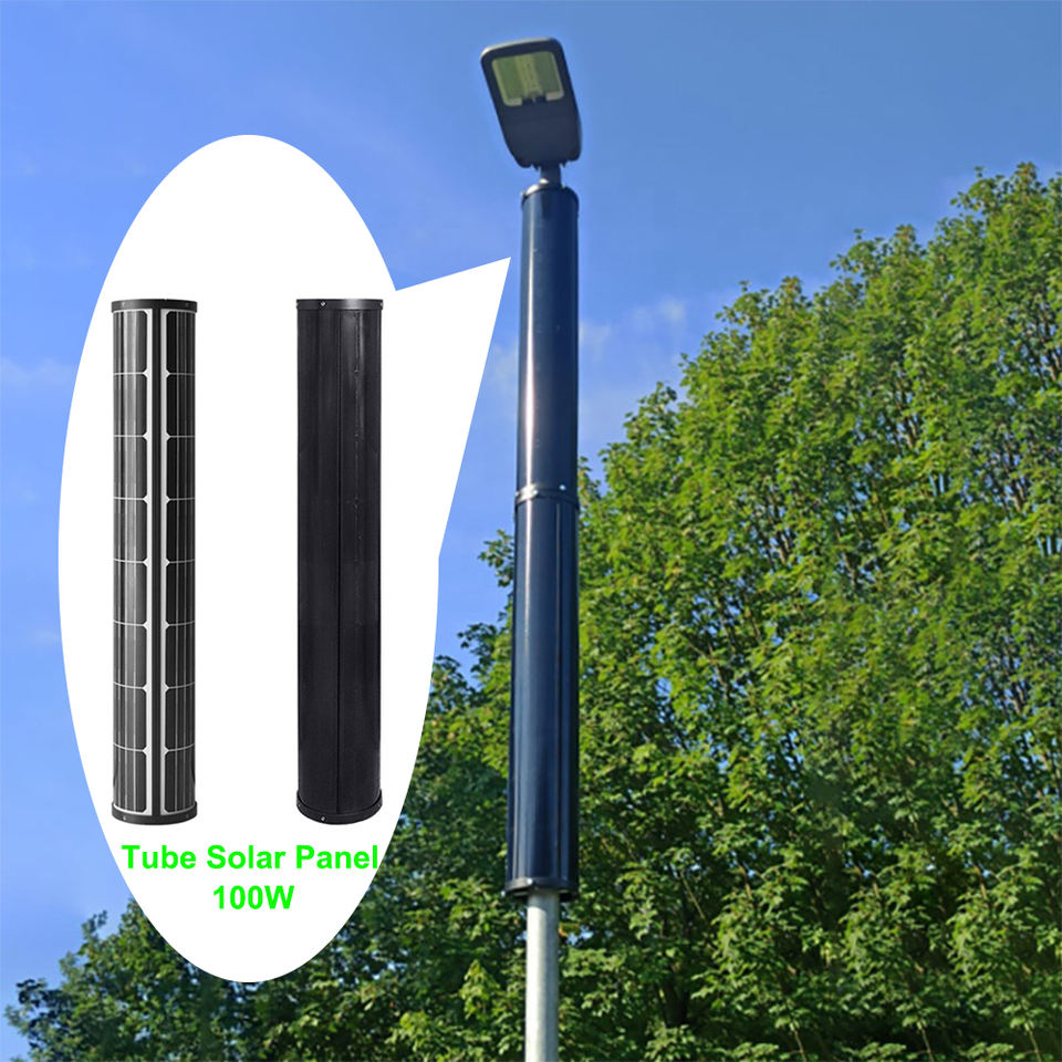 Full Black High Efficiency Monocrystalline Tube Solar Panels SunPower 12V 100W Cylindrical Solar Panel for Solar Light Pole CCTV