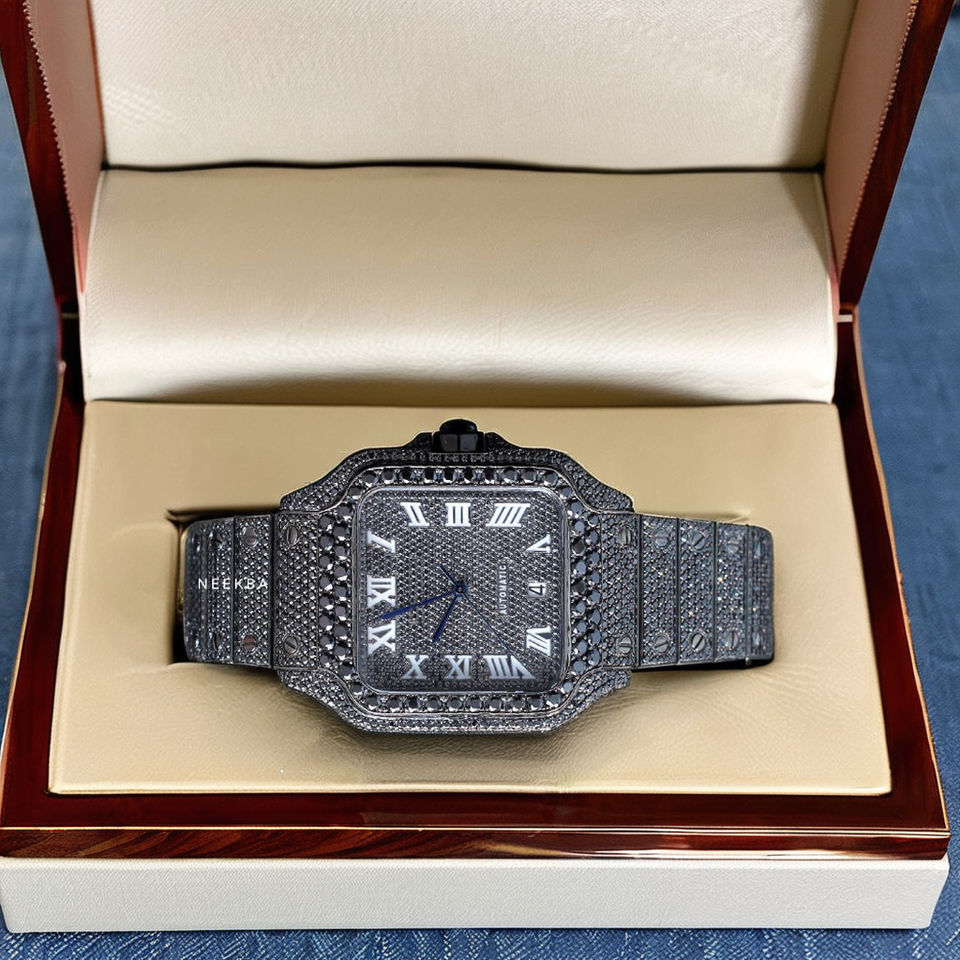 นาฬิกาเพชรโมอิสสีดำเต็มตัว-โชว์ลงสุดหรูนาฬิกาเพชรสีดำนาฬิกาสไตล์แร็ปเปอร์งานแฮนด์เมดอย่างพิถีพิถัน