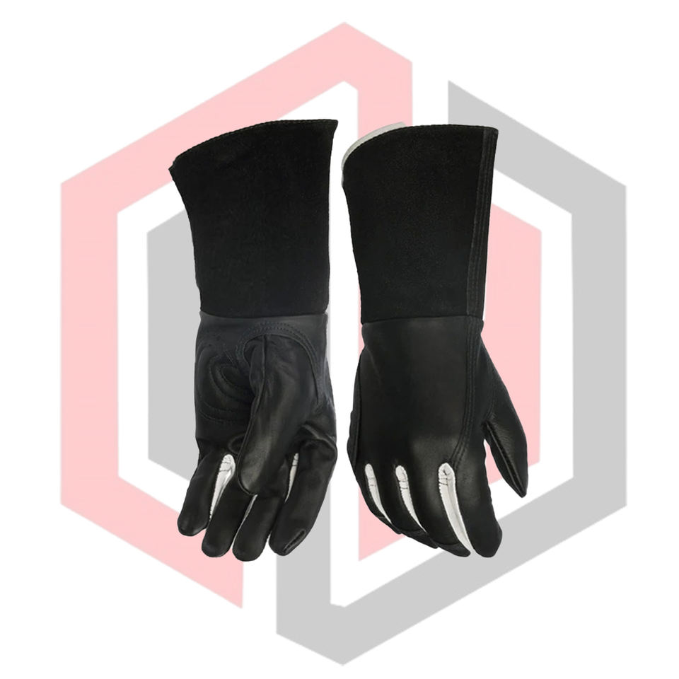 ถุงมือเชื่อมหนังวัวแท้สีดำทั้งชิ้น ระบายอากาศได้ดี ยาว 16 นิ้ว ป้องกันความร้อน ใช้งานทั่วไป ปราศจากซิลิโคน ป้องกันการบาด