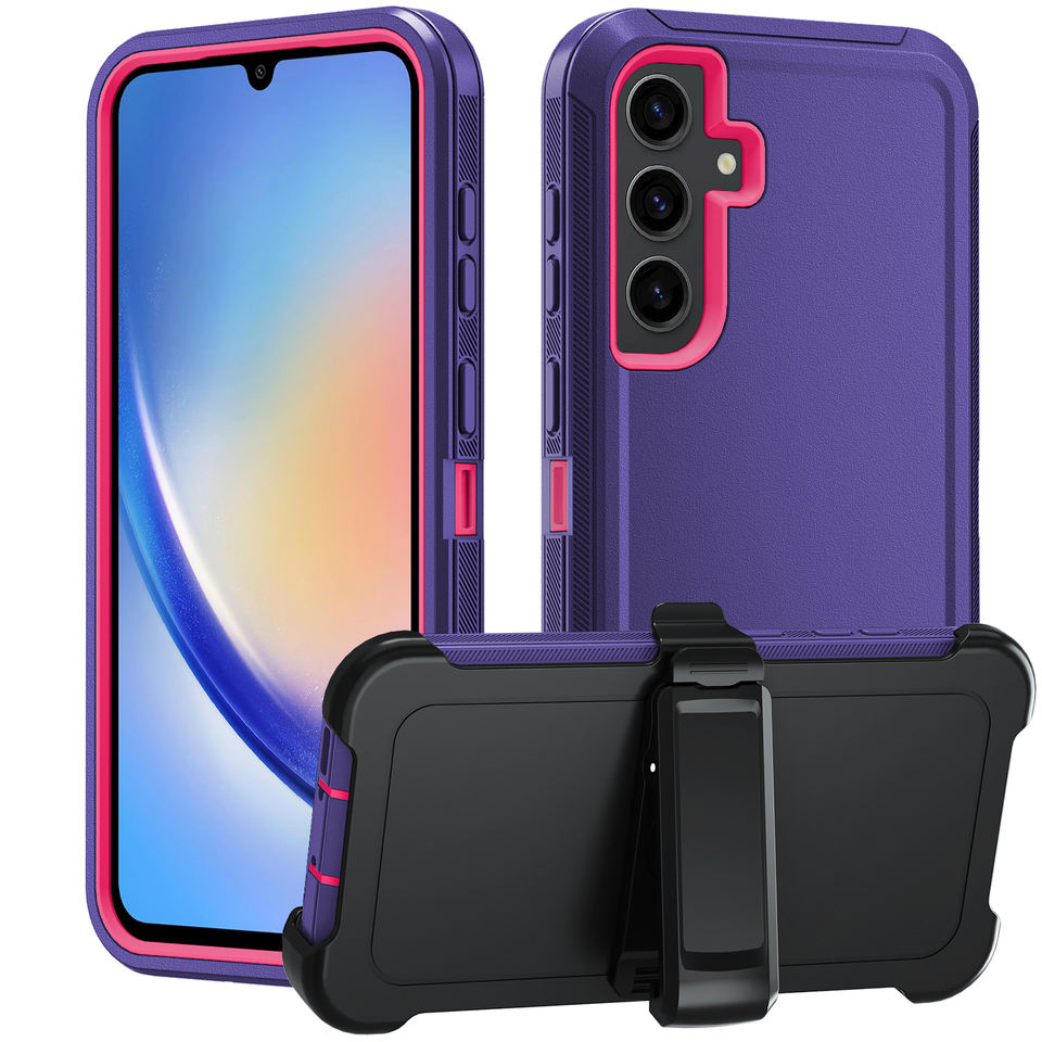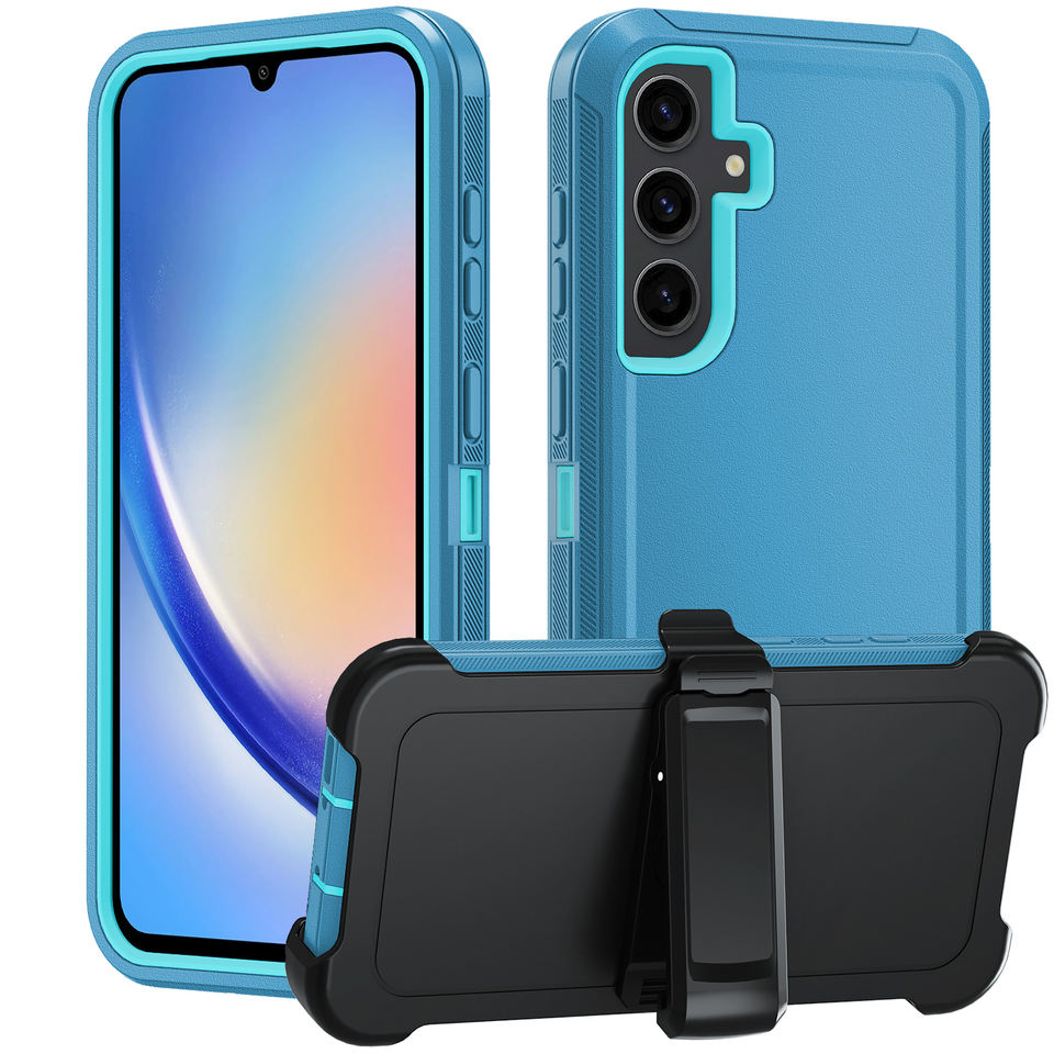เคสโทรศัพท์มือถือ3ชั้นเกราะแบบเต็มตัวเคสแบบมีเข็มขัดคลิปหนีบเข็มขัดเคสขาตั้งสำหรับ Samsung A35 A55 A25 A15 A14 5g
