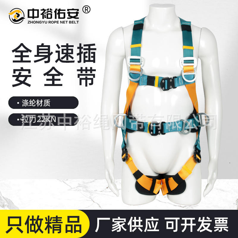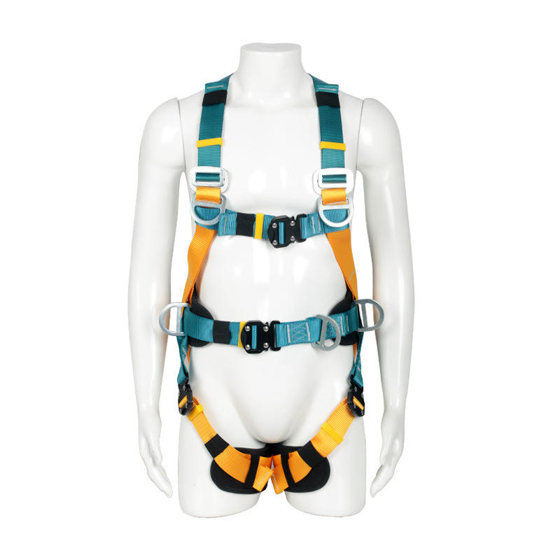 ชุดสายรัดนิรภัยแบบเต็มตัว 5 จุด ปรับความยาวได้ หัวเข็มขัดแบบเชื่อมต่อเร็ว รับน้ำหนักได้ 1500 กก. วัสดุโพลีเอสเตอร์