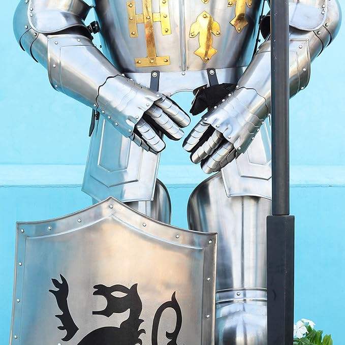 ชุดเกราะยุคกลางเต็มตัวพร้อมฐานสีดำ