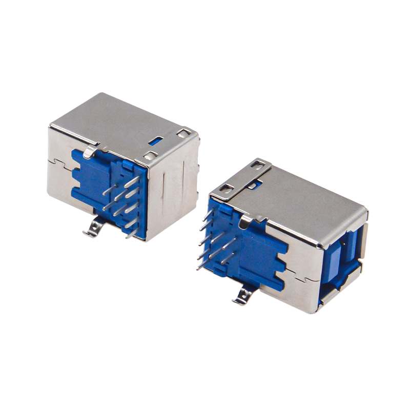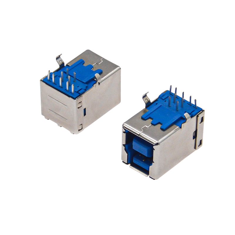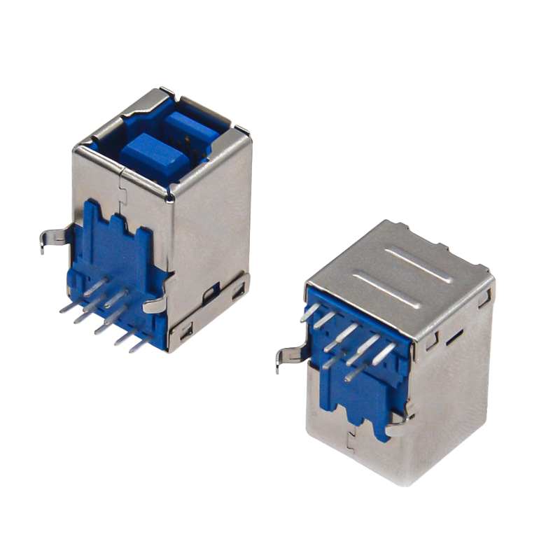 Full Brass Contact USB 3.0 Type-B Female Connector, 90° Right-Angle Design with Blue Housing for Stable Printer Connection
