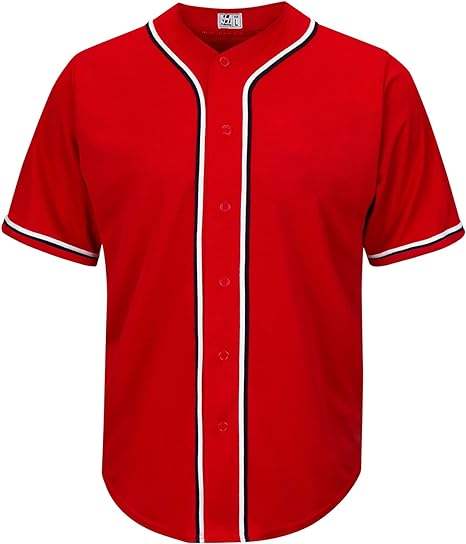 เสื้อเบสบอลแขนสั้นคอวีแบบเต็มตัว ไม่มีลาย แต่งขอบด้วยเส้น สำหรับทีม ชุดฝึกซ้อม แบบซับลิเมชั่น