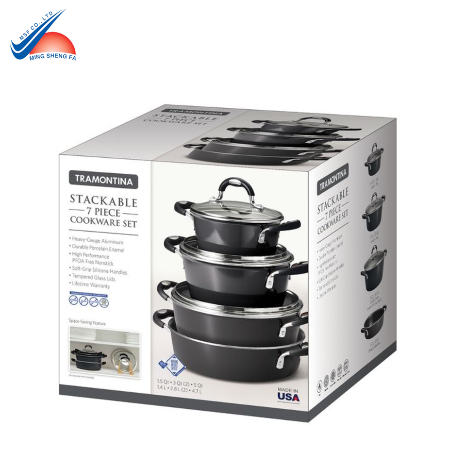 กล่องกระดาษแข็งสีเต็มรูปแบบสำหรับกระทะไม่ติดกระทะ | เครื่องครัวบรรจุภัณฑ์ขายปลีก