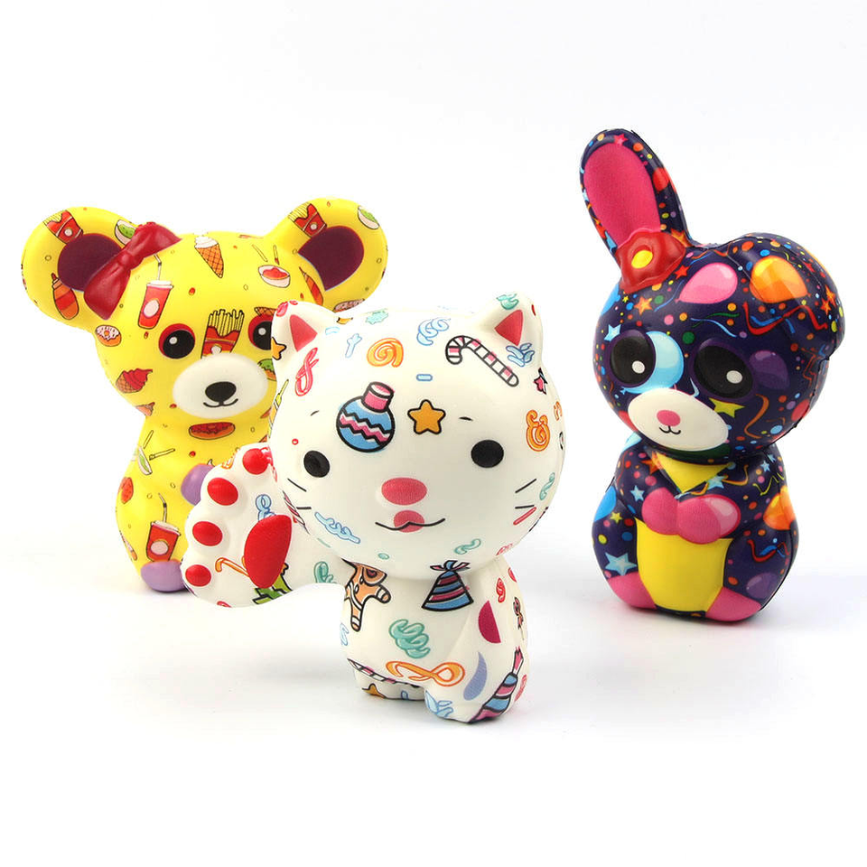 ของเล่นบีบโฟม PU พิมพ์ลายหลากสีรูปสัตว์น่ารักบรรเทาความเครียดสำหรับเด็กและผู้ใหญ่