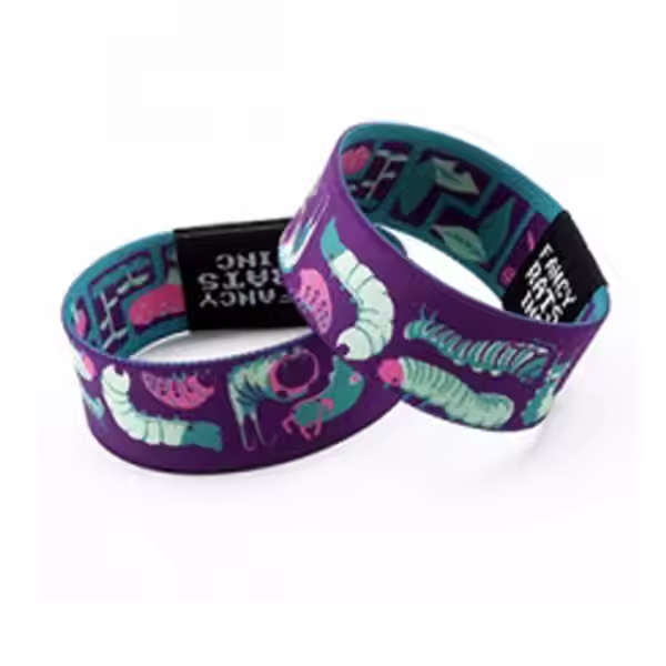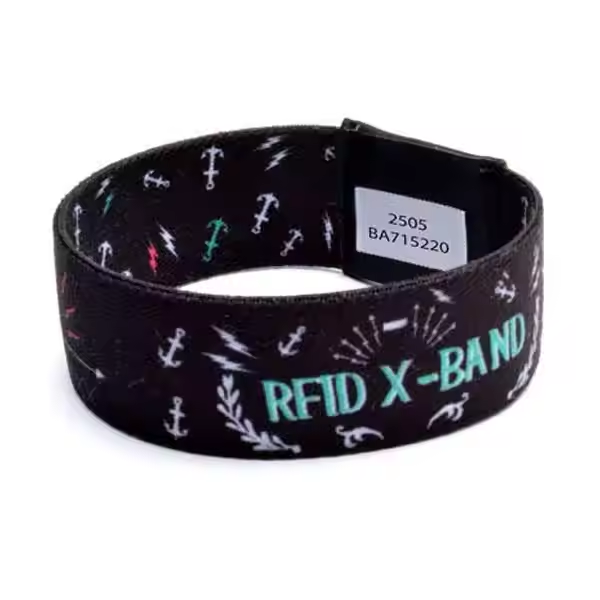 สายรัดข้อมือ RFID สีสันสดใส พร้อมแท็ก NFC และป้ายโพลีเอสเตอร์แบบถักด้วยความร้อน สำหรับระบบควบคุมการเข้าออก