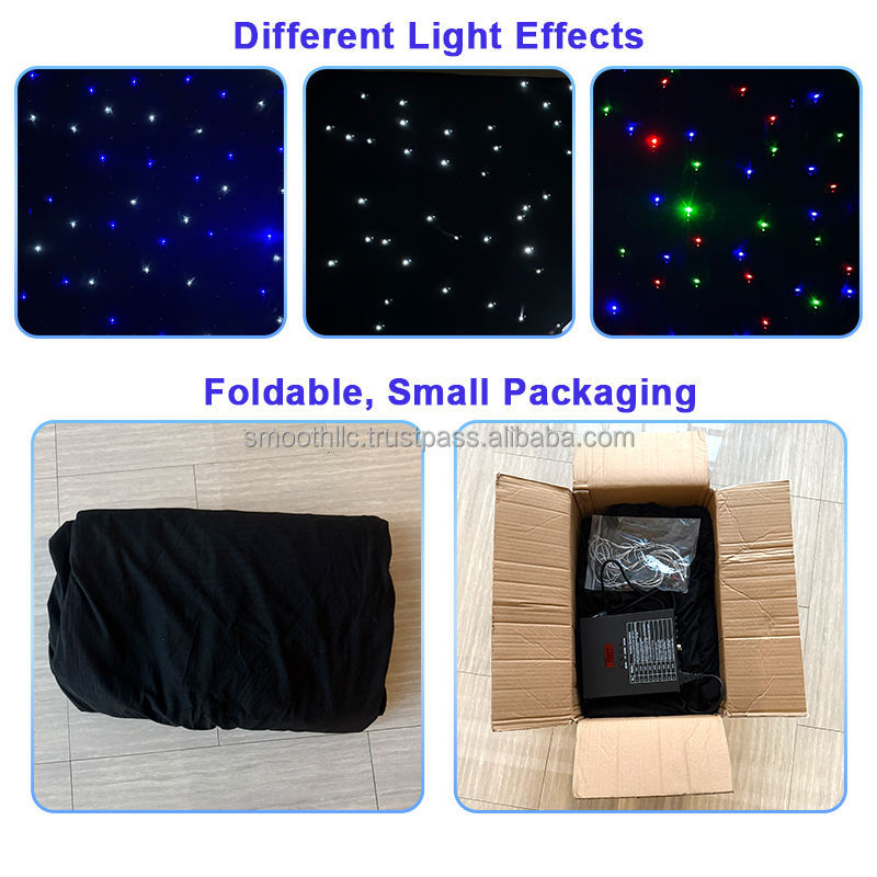 ผ้าม่านฉากหลังงานแต่งงานแบบเต็มสี ลายท้องฟ้าเต็มดาว ตกแต่งเวที ขนาดสั่งทำได้ ควบคุมด้วย DMX ผ้าฉากหลังพร้อมไฟ LED ผ้าม่านดาว