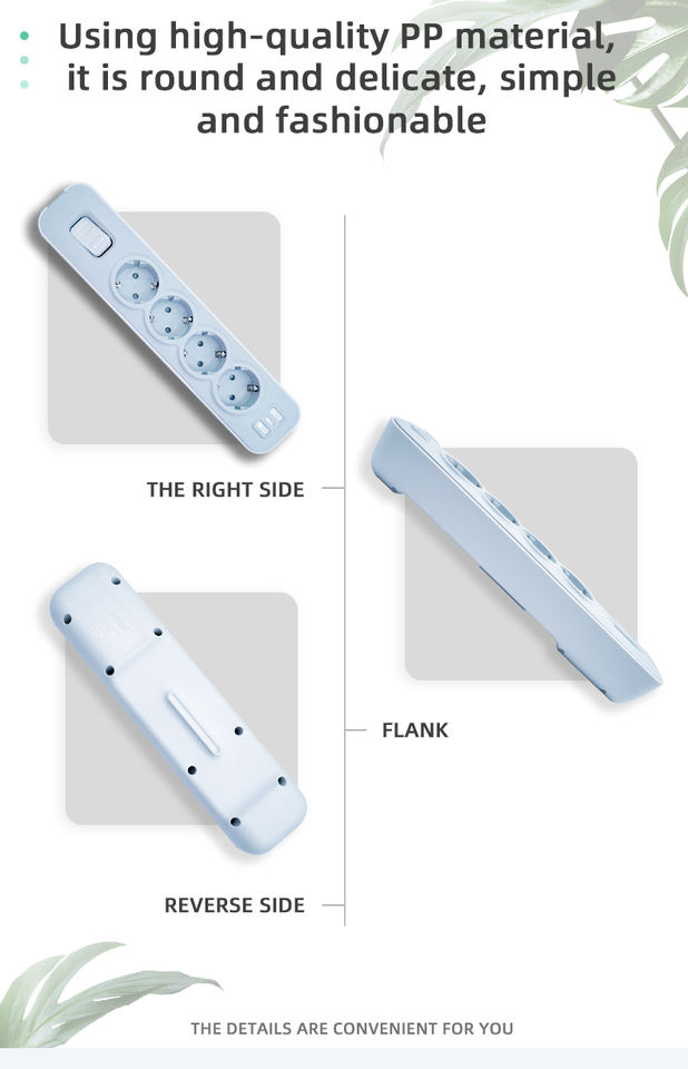 ตัวนำทองแดงแท้ ซีรีส์ NOVA EU 16A 4000W ปลั๊กพ่วงพร้อมสวิตช์ป้องกันไฟเกิน ป้องกันไฟกระชาก โครงสร้างป้องกันไฟไหม้ สำหรับบ้านและสำนักงาน