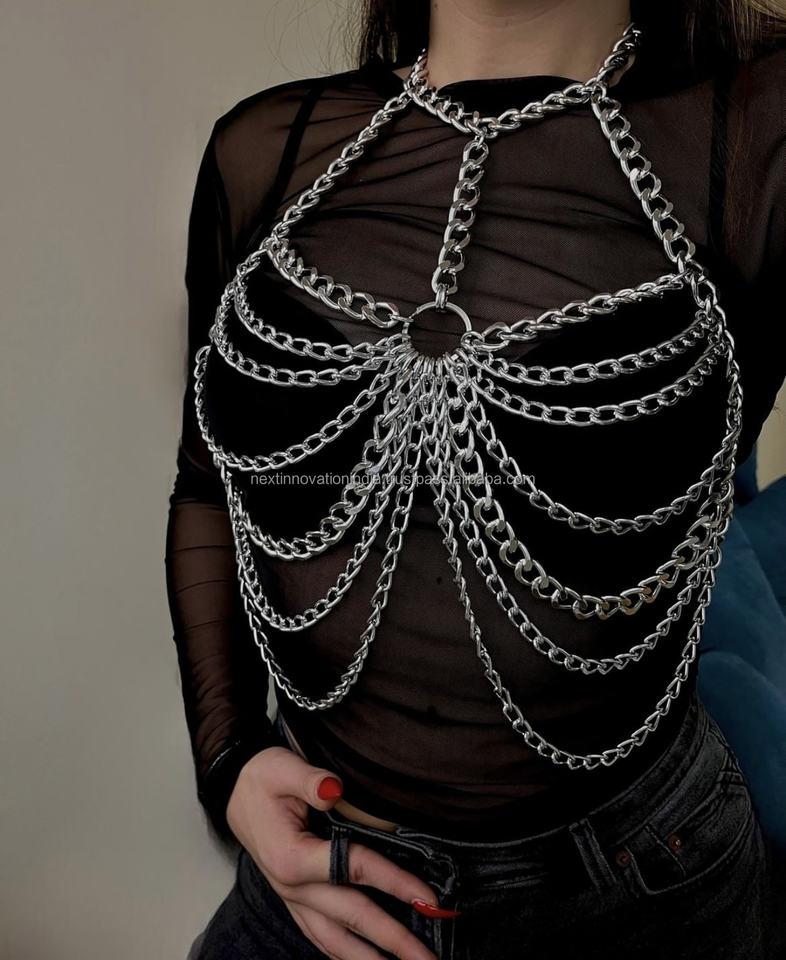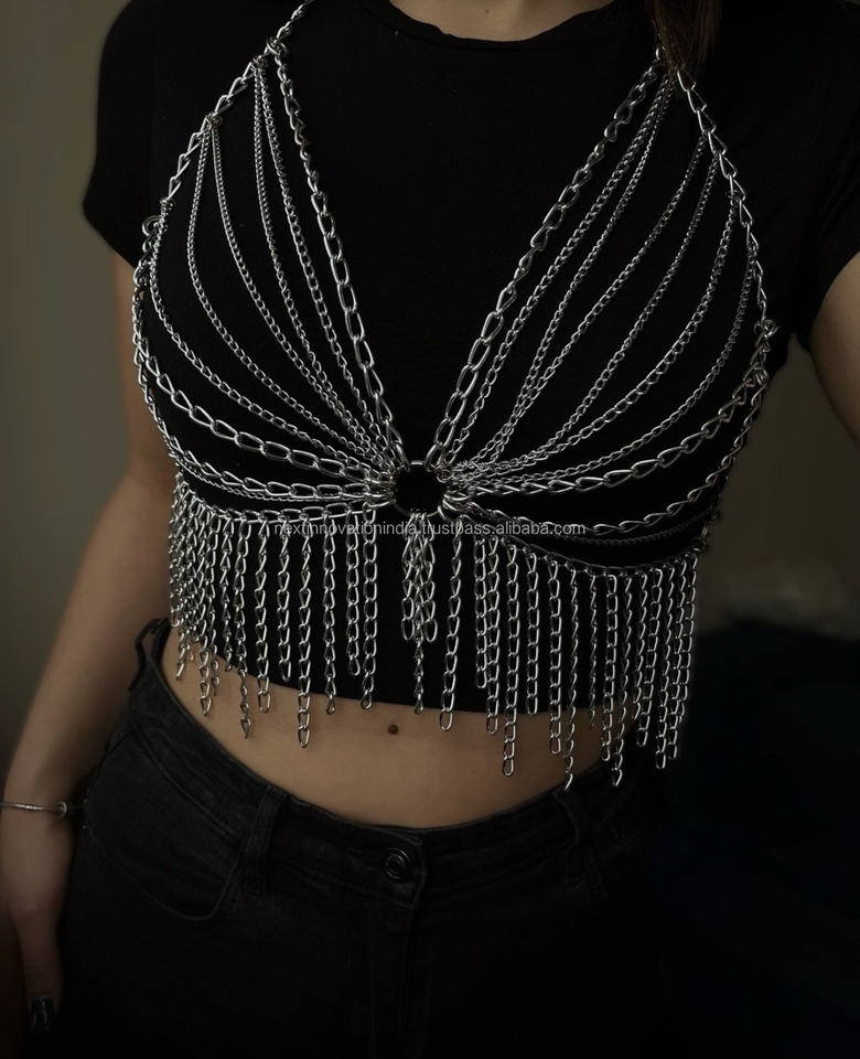 โซ่คล้องบิกินี่สุดแวววาวประดับคริสตัลพร้อมชุดชั้นในมีพู่