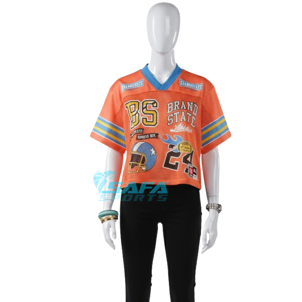 เสื้อเจอร์ซีย์ตาข่ายแบบสั่งทำพิเศษ รุ่น Unisex OEM พิมพ์ลายทรงบ็อกซี่ ครอป สไตล์สตรีทแวร์ สำหรับแฟนฟุตบอล