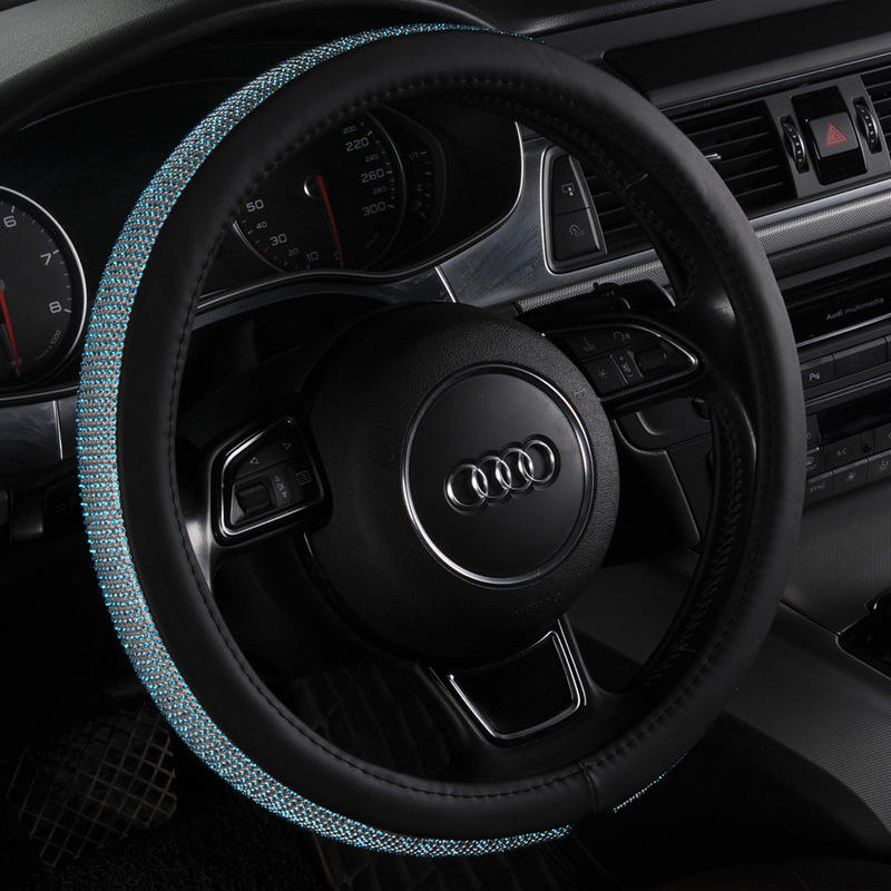 ที่หุ้มพวงมาลัยฝังเพชรทั้งใบสำหรับรถยนต์ที่หุ้มพวงมาลัยหนังไมโครไฟเบอร์สำหรับทุกฤดู