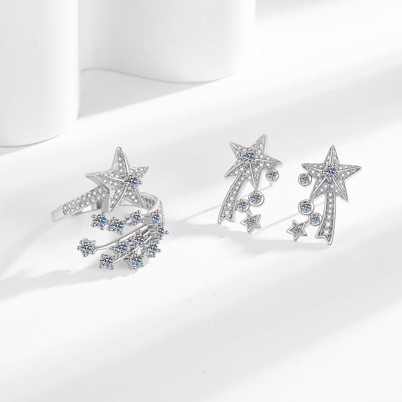แหวนลายดาวตกเพชรเต็มวง ดีไซน์สำหรับผู้หญิง ลายกาแล็กซี่ระหว่างดวงดาว ดีไซน์คลาสสิก หวานละมุน แหวนของขวัญ เครื่องประดับ