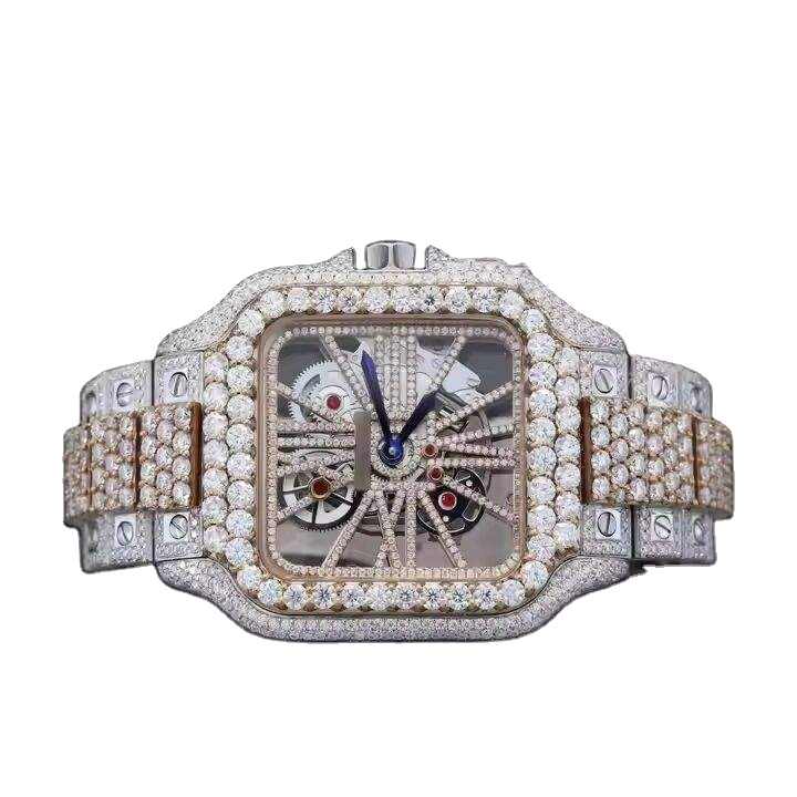 นาฬิกาข้อมือผู้ชายสุดหรู สไตล์คลาสสิก ดีไซน์โครงกระดูก ประดับเพชรเต็มหน้าปัด ระบบควอตซ์ ตัวเรือนสแตนเลสสตีล แนวฮิปฮอป ประดับเพชรโมอิสซาไนต์ VVS