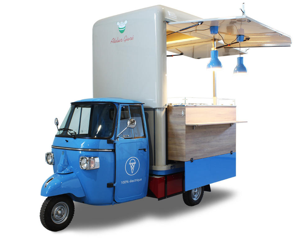 รถเข็นอาหารสามล้อไฟฟ้า Piaggio อุปกรณ์ครบครัน, รถขายอาหารกาแฟและขนมขบเคี้ยวพร้อมครัวเต็มรูปแบบผลิตจากวัตถุดิบเบียร์
