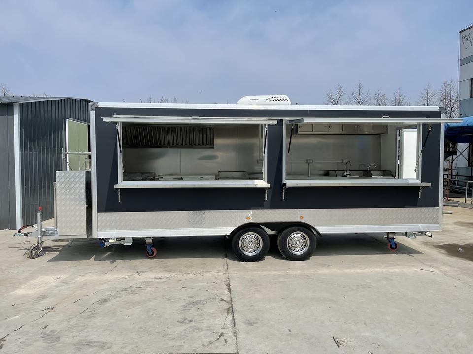 เครื่องพ่วงอาหารเคลื่อนที่สำหรับขายปลีกขนมขบเคี้ยวผลิตภัณฑ์นมขนมฮอทด็อกทำจากบาร์บีคิวทำจากข้าวโพด