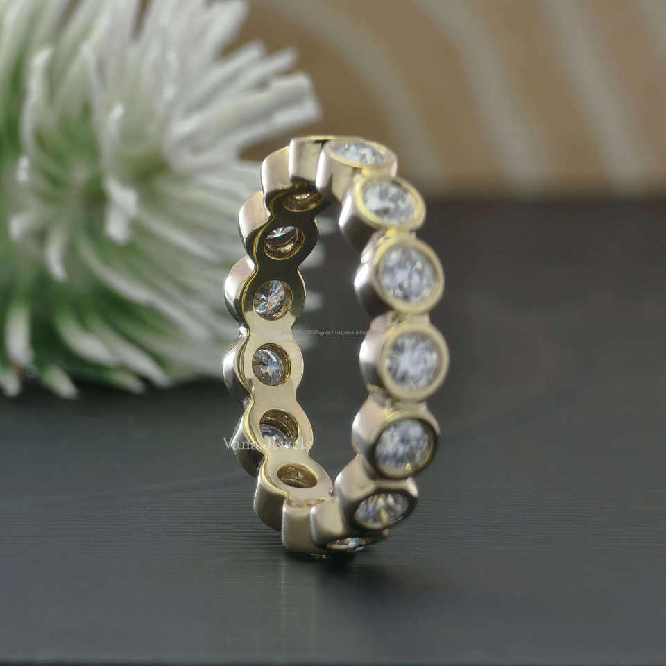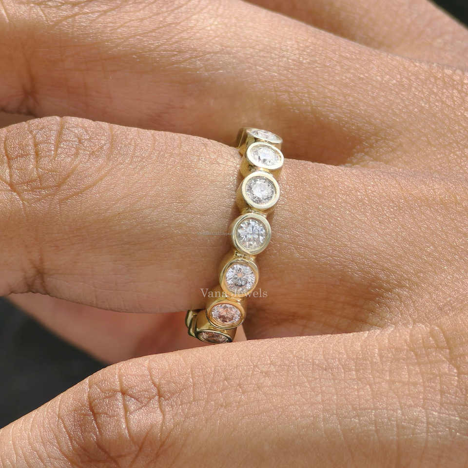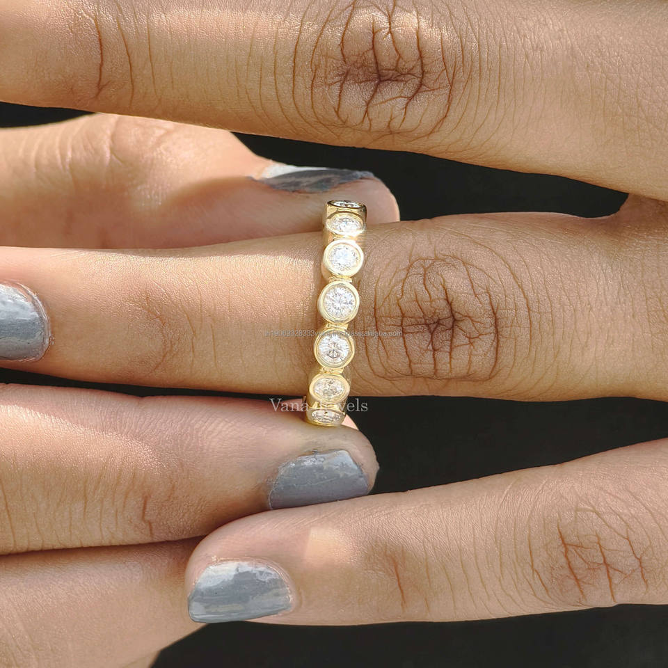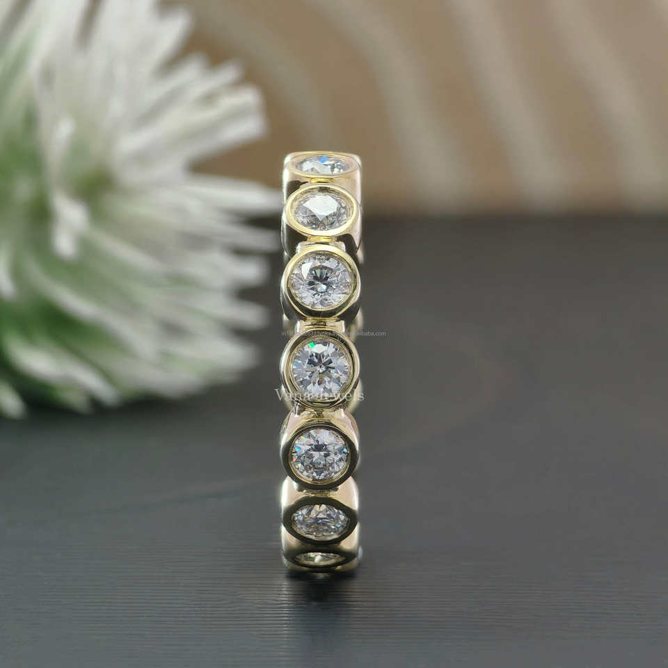 แหวนแต่งงานทันสมัยประดับเพชรโมอิสซาไนต์ทรงบริลเลียนต์คัท น้ำหนัก 1.40 กะรัต ตัวเรือนทองคำแท้ 14K ทรงเต็มวง พร้อมแหวนคู่เป็นของขวัญ