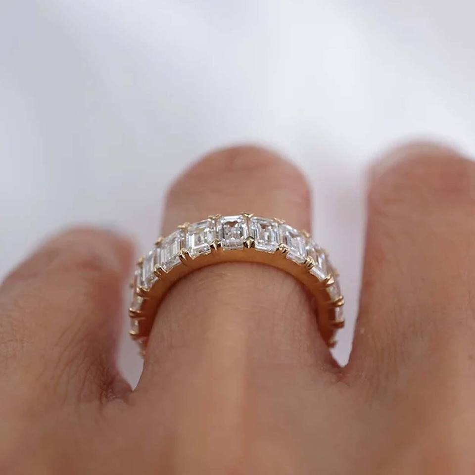 เต็มนิรันดร์มรกตตัด Lab ปลูกเพชร CVD เพชรงานแต่งงาน 4*2 มม.10 K สีเหลืองทอง Lab ปลูกแหวนหมั้น VVS2