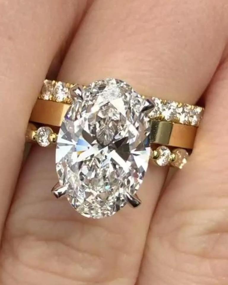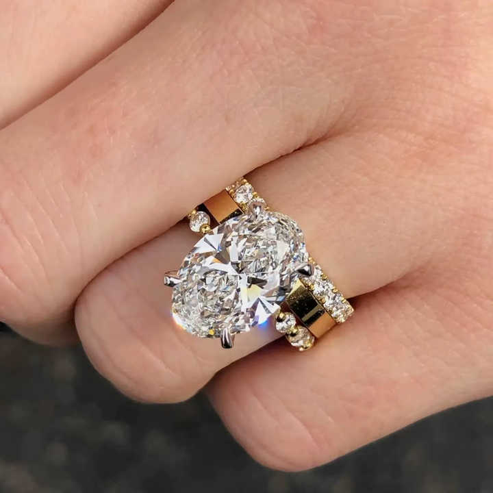 ชุดสายรัดสำหรับเจ้าสาวแบบเรียงซ้อนกันเต็มรูปแบบหรูหรา1.20 CT E VVS2 IGI ได้รับการรับรองรูปไข่แหวนหมั้นเพชร18K ชุบทอง18K