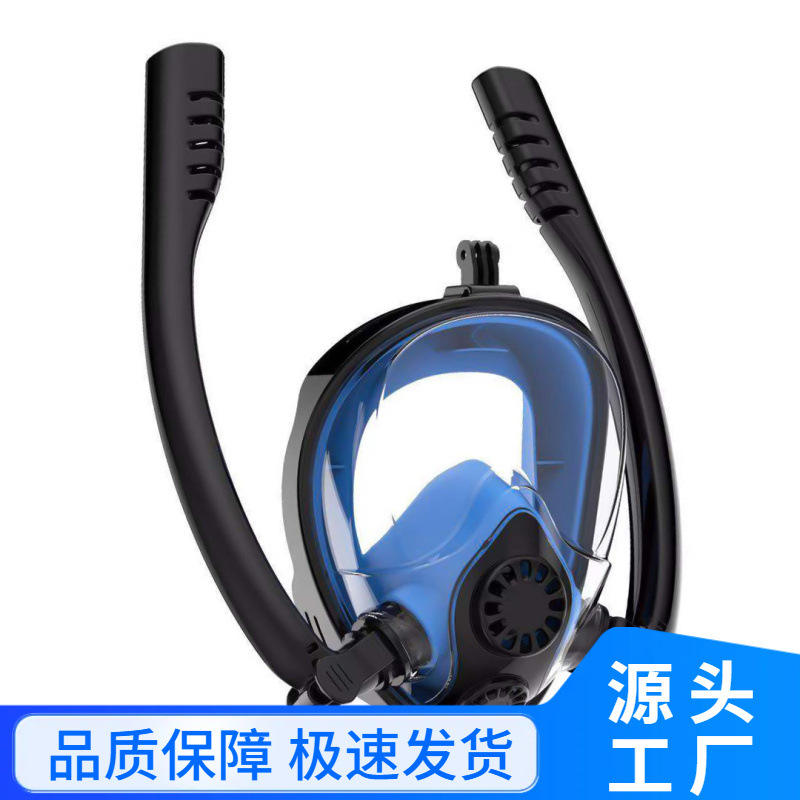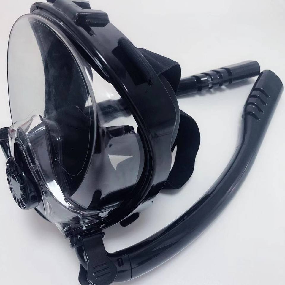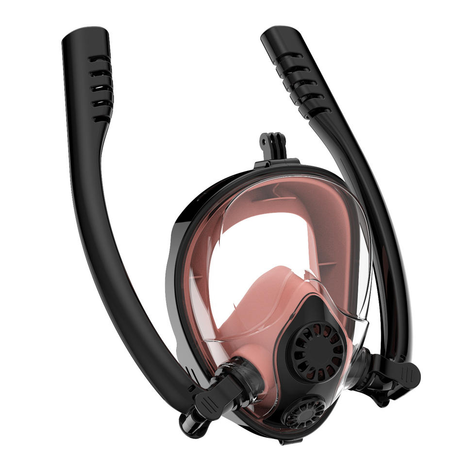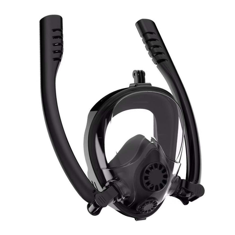 หน้ากากดำน้ำแบบเต็มหน้าแบบท่อคู่สำหรับผู้ใหญ่และเด็ก สีดำ ขนาด SMLXL รุ่น K2