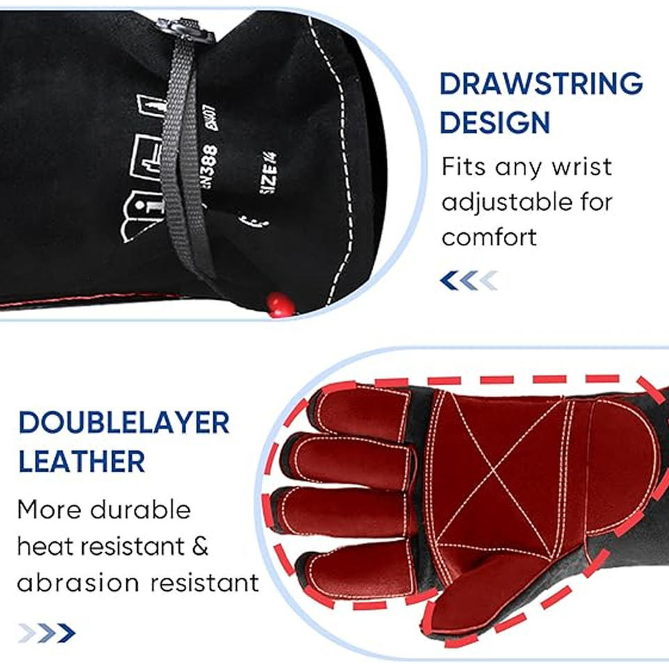 ถุงมือเชื่อมหนังวัวแบบแยกนิ้วเต็มนิ้วถุงมือบาร์บีคิวป้องกันมือสำหรับงานอุตสาหกรรม