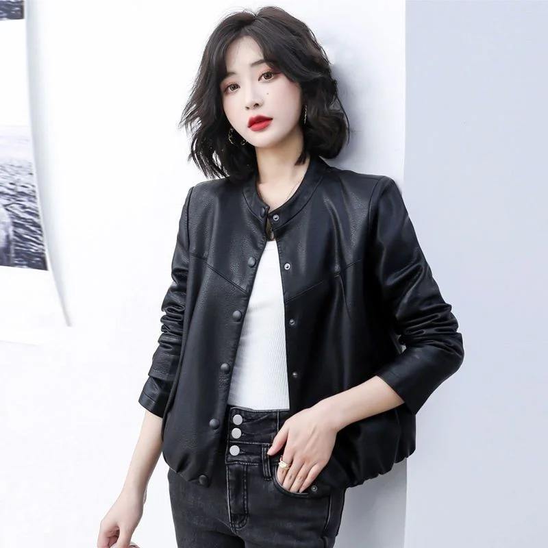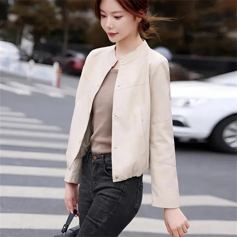แจ็กเก็ตหนังแท้แบบเต็มตัวสำหรับสตรีเสื้อผ้าหนัง2025ใหม่สำหรับฤดูใบไม้ผลิ-ฤดูใบไม้ร่วง