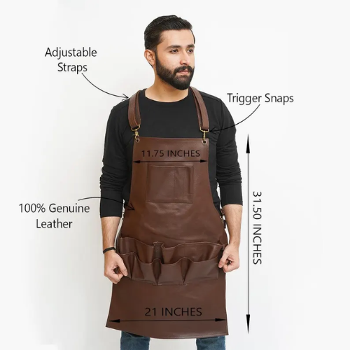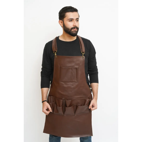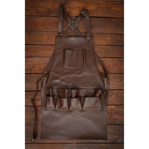 ชื่อผลิตภัณฑ์:ผ้ากันเปื้อนหนังพรีเมี่ยมลายไม้เต็มกระเป๋าเครื่องมือช่างแบบเรียบง่าย