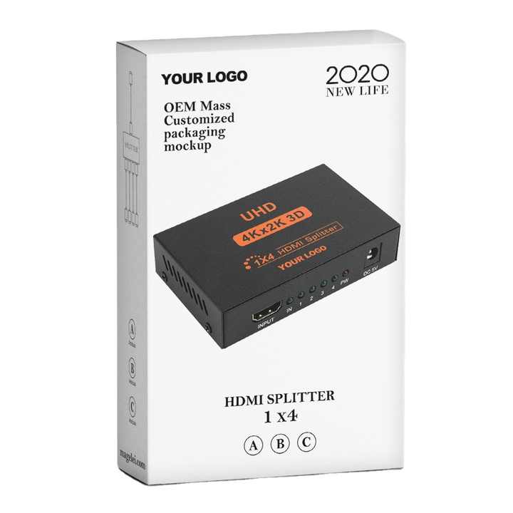 Full HD 4Kx2K HDMI 1 in 4 Out Splitter HDMI 1x4 Splitter with AC Adaptor Duplicate/Mirror Screen Support 2K X 4K 2160P 3D Audio
