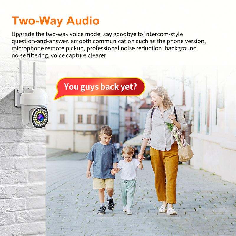 มนุษย์การติดตามการเคลื่อนไหว, ในตอนกลางคืน, การตรวจจับการเคลื่อนไหว, กันน้ำ / ฝนและแดด, Built-in ไซเรน, PAN-TILT, 2-Way Audio
