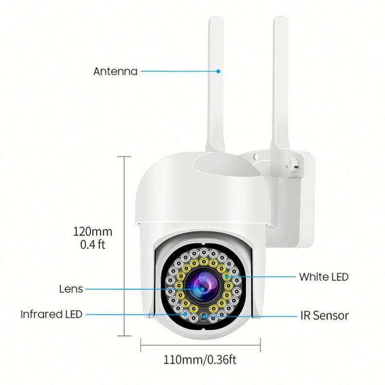 มนุษย์การติดตามการเคลื่อนไหว, ในตอนกลางคืน, การตรวจจับการเคลื่อนไหว, กันน้ำ / ฝนและแดด, Built-in ไซเรน, PAN-TILT, 2-Way Audioคุณสมบัติพิเศษ