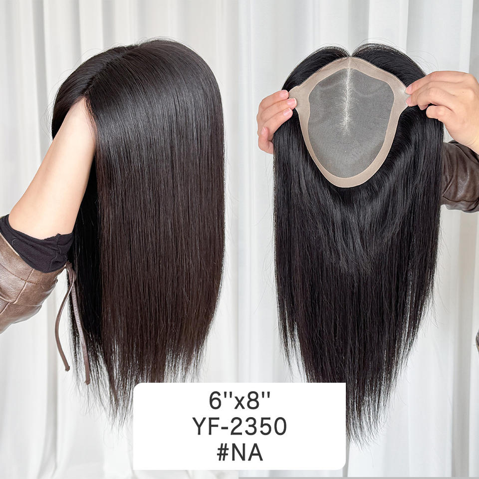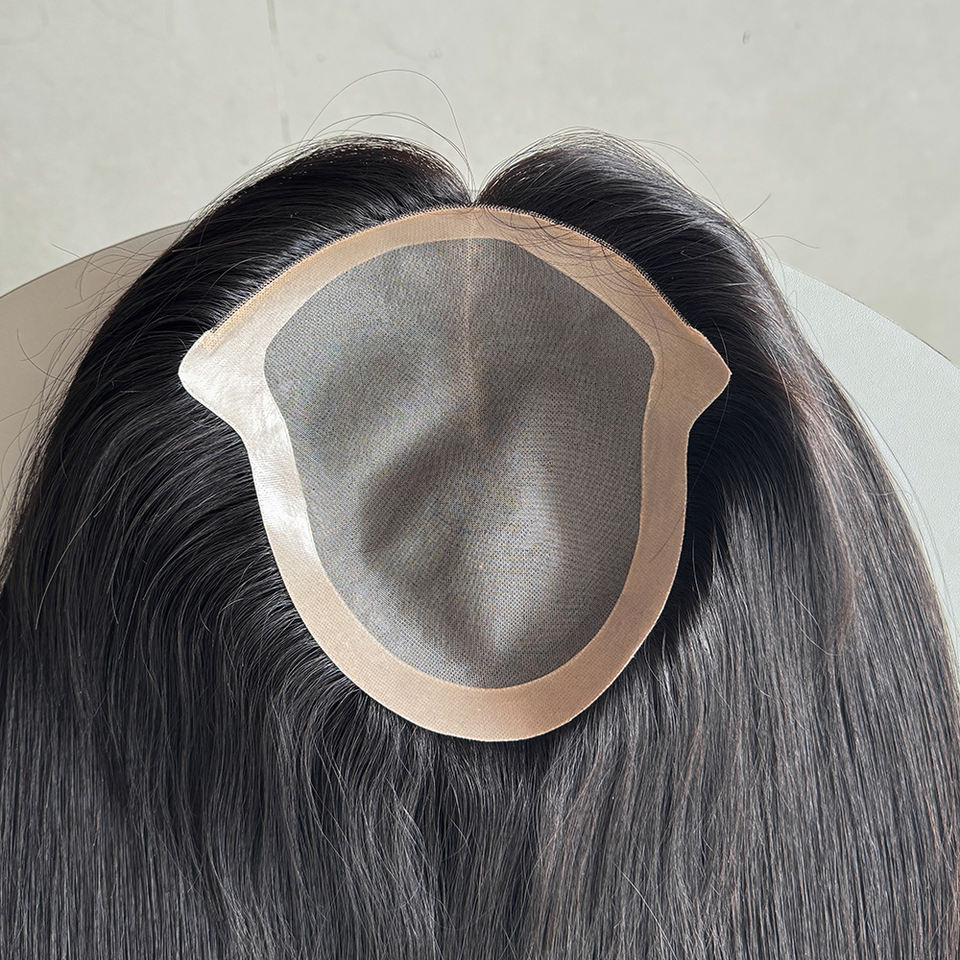 ท็อปเปอร์ผมแท้แบบผูกมือทั้งหัว ขนาด 6x8 นิ้ว ฐานโมโนพร้อม PU รอบด้าน สีธรรมชาติ พร้อมคลิปหนีบ สำหรับผู้หญิงที่ผมร่วงมาก