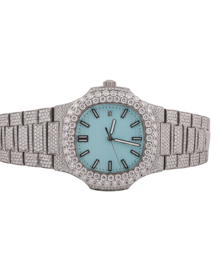 Full Iced Out Moissanite Diamond Wrist watch Customized Blue Color Dial Hip-hop Automatic Watch For Men's Birthday Gift