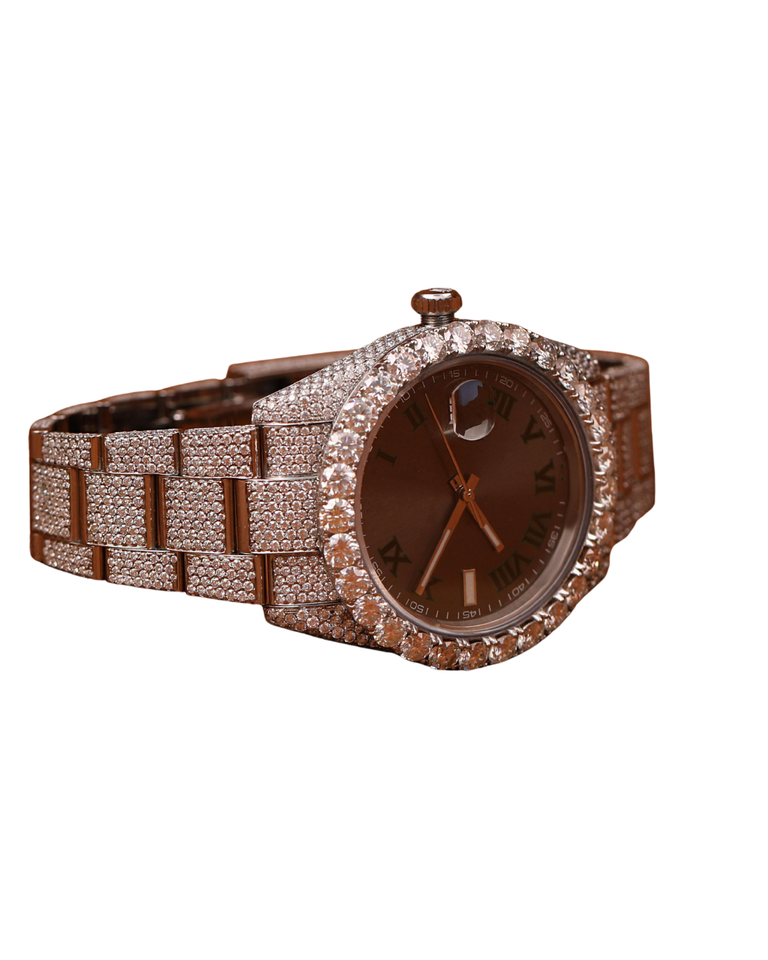 นาฬิกาข้อมือเพชรโมอิสซาไนต์แบบเต็มหน้าปัด หน้าปัดสีน้ำตาล ดีไซน์ฮิปฮอป ระบบออโตเมติก ของขวัญวันเกิดสำหรับผู้ชาย
