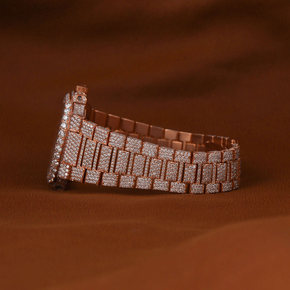 นาฬิกาประดับโรสโกลด์เต็มรูปแบบลายดอกกุหลาบสีทองสำหรับเป็นของขวัญสำหรับผู้ชาย