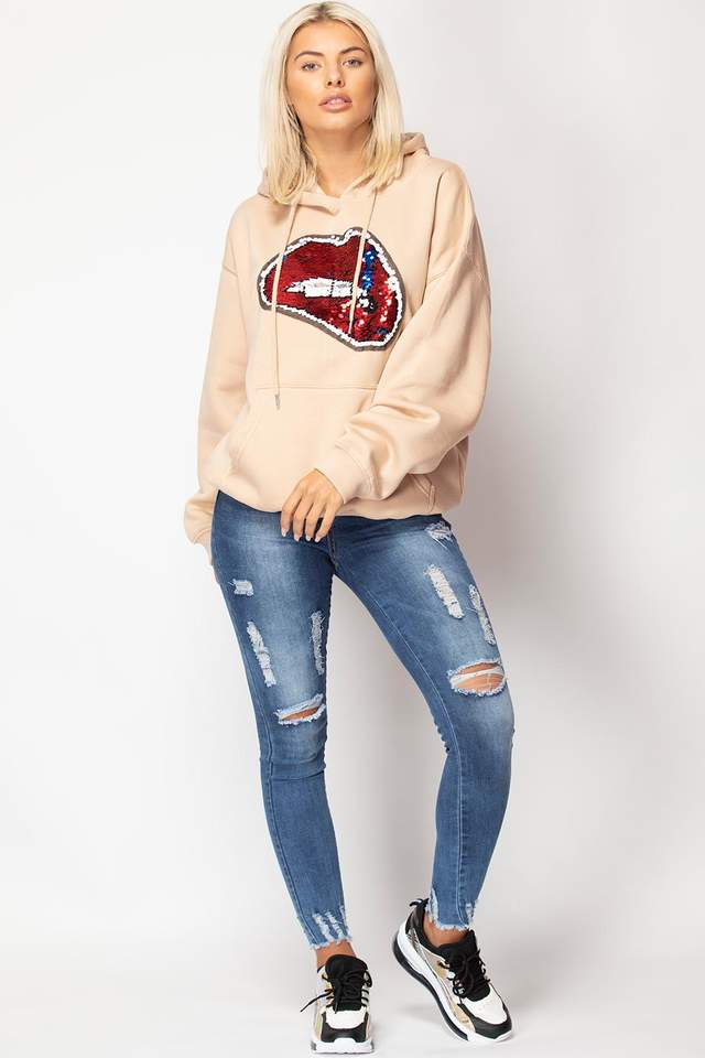 เสื้อฮู้ดกันยับและระบายอากาศได้ดีสำหรับผู้หญิงมีซิปรูดริมฝีปากเลื่อมโอเวอร์ไซส์