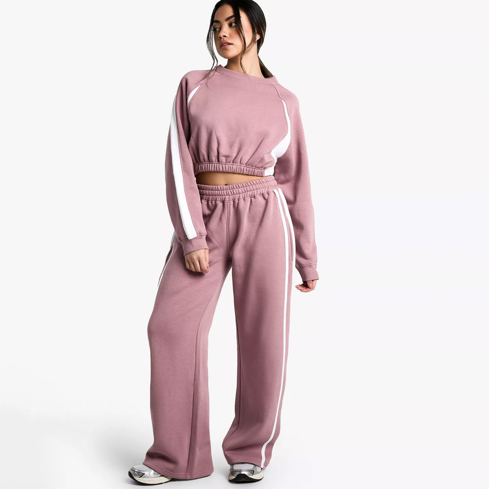 ชุดวอร์มผู้หญิงขาสั้นสีชมพูมีฮู้ดและกางเกงขายาวชุดออกกำลังกายใหม่