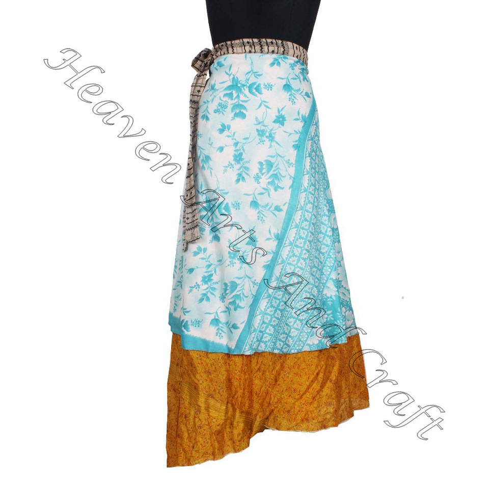 กระโปรงผ้าไหมส่าหรียาวเต็มตัวกระโปรงผ้าไหมผ้าซิ่นส่าหรีสองชั้นแบบกลับด้านได้กระโปรงห่อวิเศษจากอินเดีย