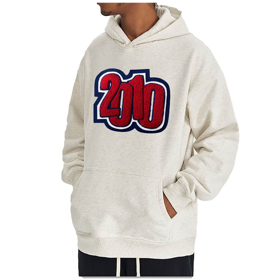 เสื้อฮู้ดผู้ชายแบบสวมหัวผ้าฟลีซและผ้าเจอร์ซีย์งานปักลายแนววินเทจ