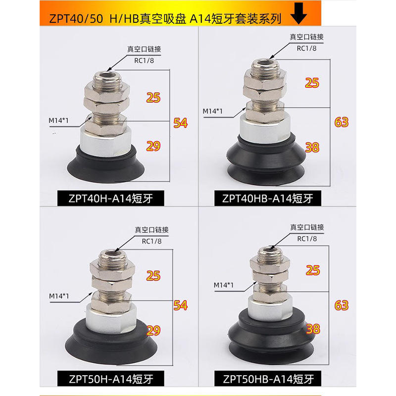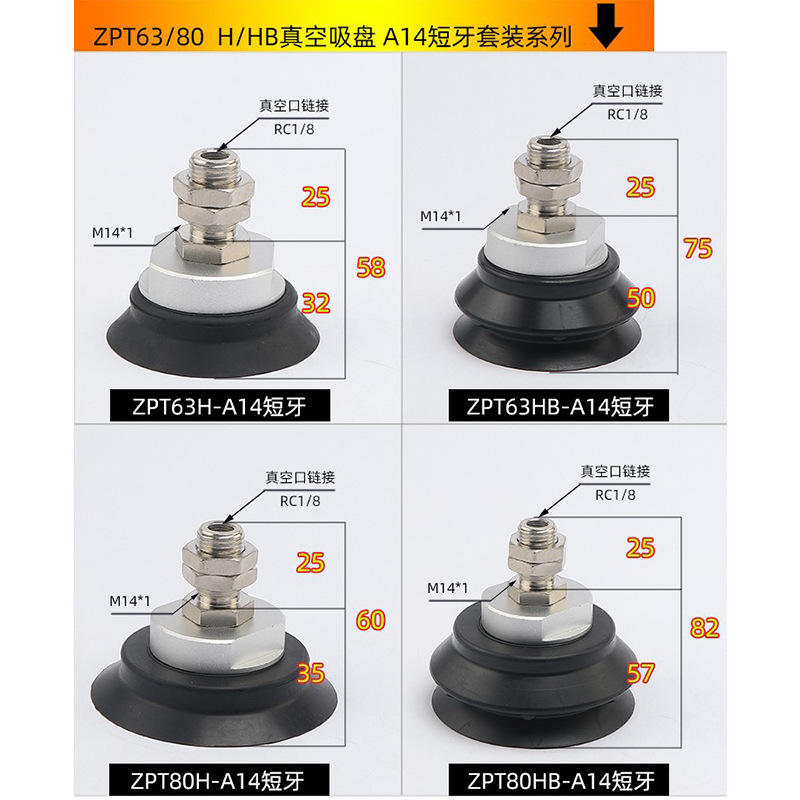 อุปกรณ์เสริมนิวเมติกอุตสาหกรรมแบบใช้แรงดูดสูญญากาศสำหรับแขนหุ่นยนต์กำลังเต็ม 40/50/63/80/100/125H/HB-A14 ตัวดูดสูญญากาศเหล็ก