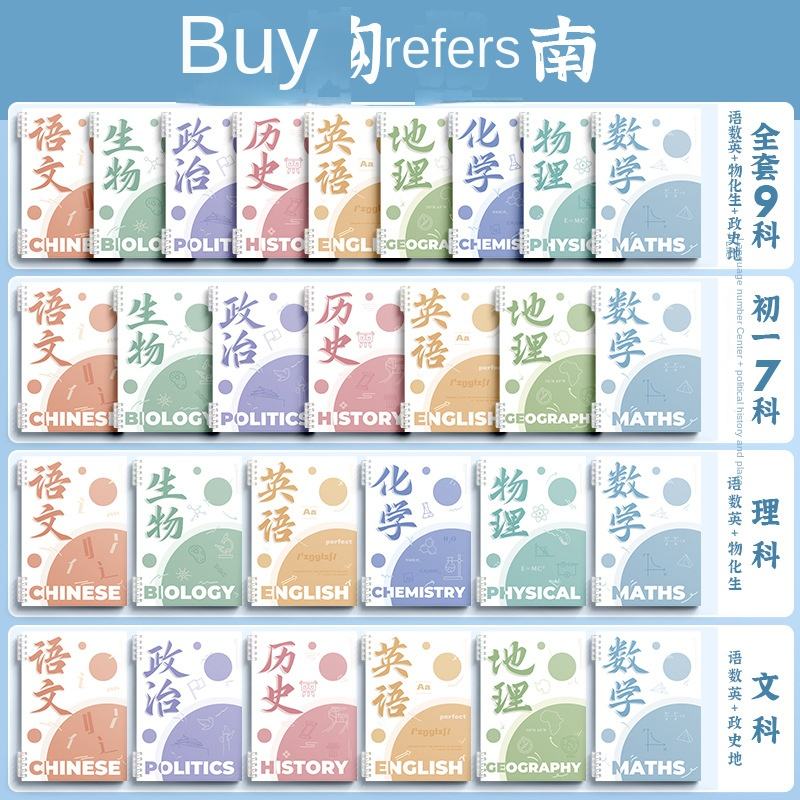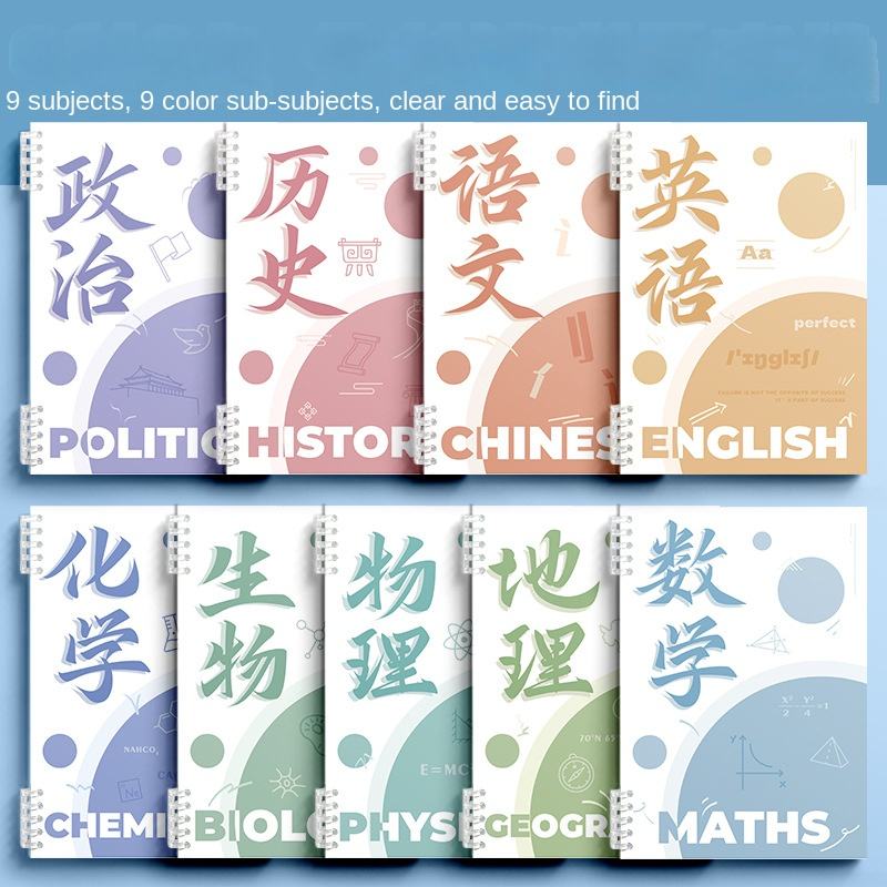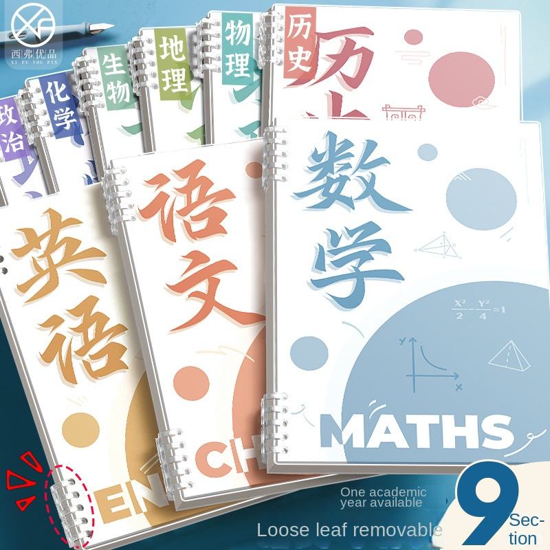 สมุดโน้ตแบบหลวม9หัวข้อแบบเต็มชุดสำหรับนักเรียนมัธยมต้นขนาด B5พิมพ์ข้อความหนังโฟกัสภาษาอังกฤษ