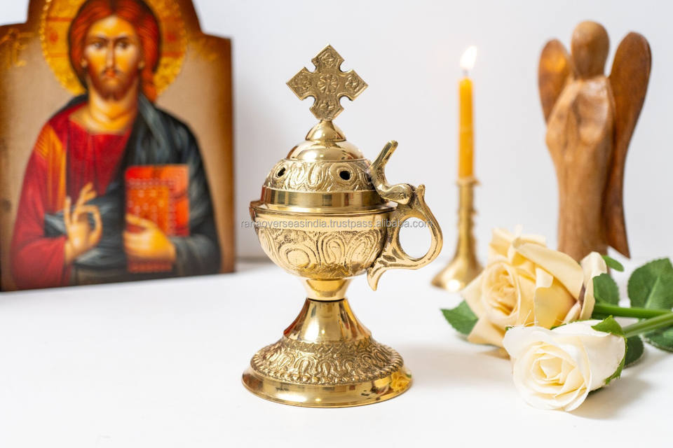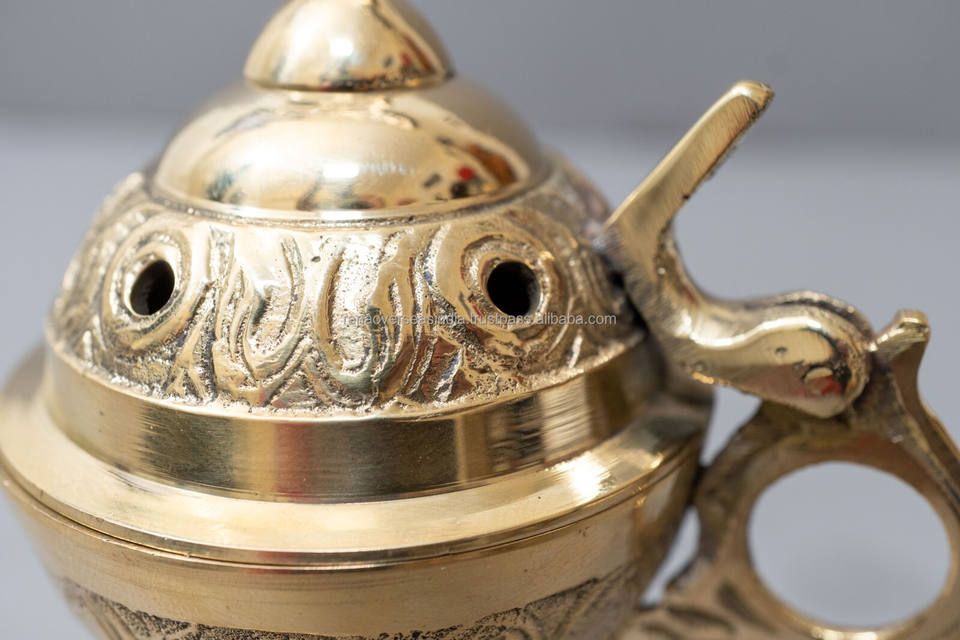 ชุดเต็มของเตาเผาเครื่องหอมอินเดียทำมือ-เตาเผาน้ำหอมไม้จันทน์หอมทองเหลืองสำหรับฤดูใบไม้ร่วง