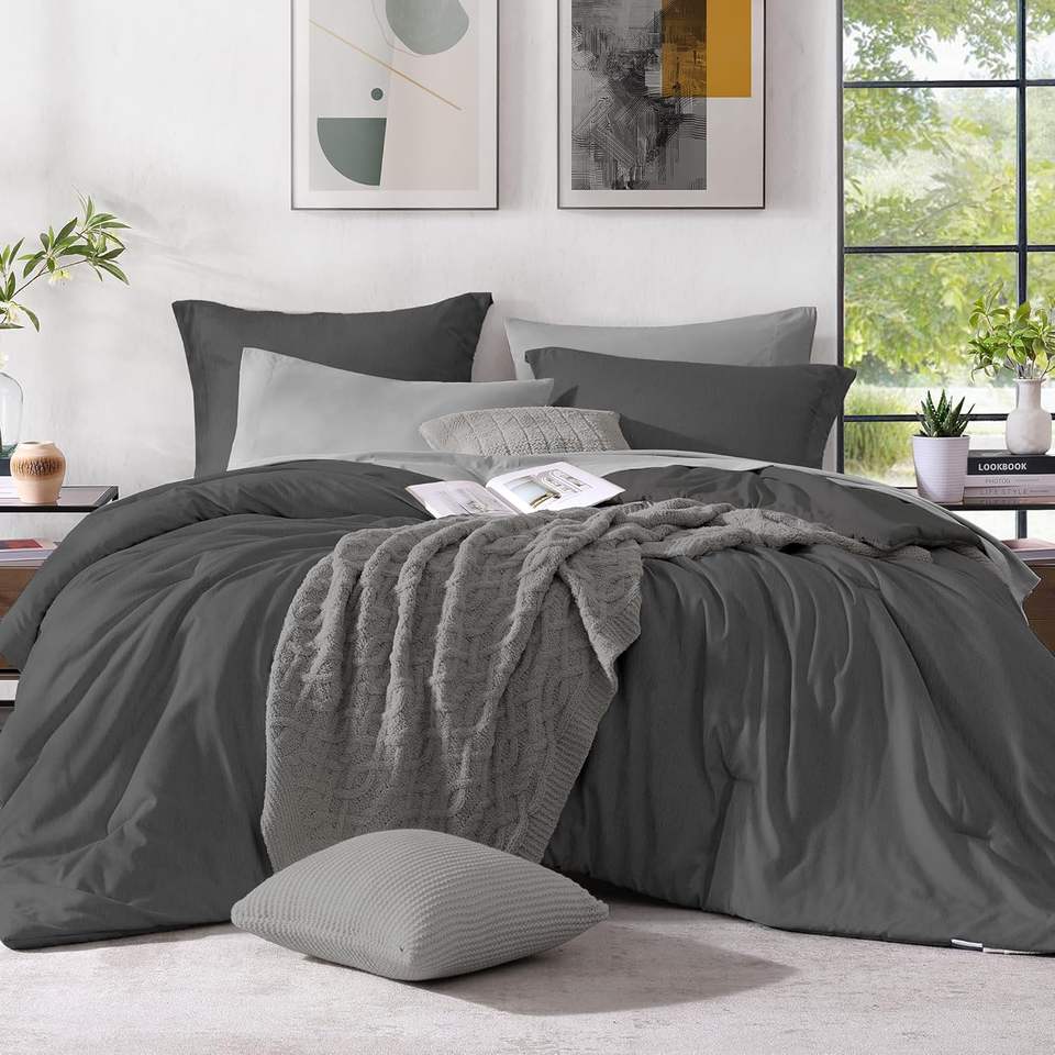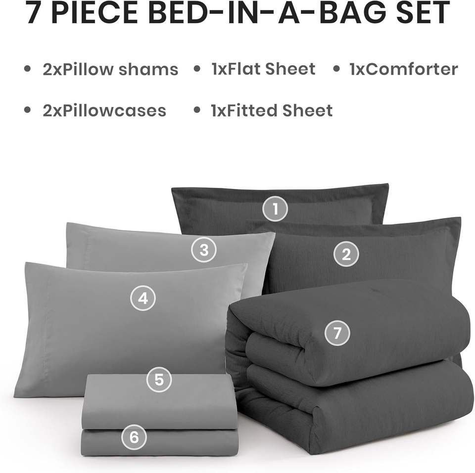 ชุดผ้าคลุมเตียงขนาดเต็มชุดเครื่องนอนสีเทาเข้มชุดเต็ม7ชิ้นพร้อมผ้าพันคอผ้าปูที่นอนปลอกหมอนและผ้าคลุมไหล่