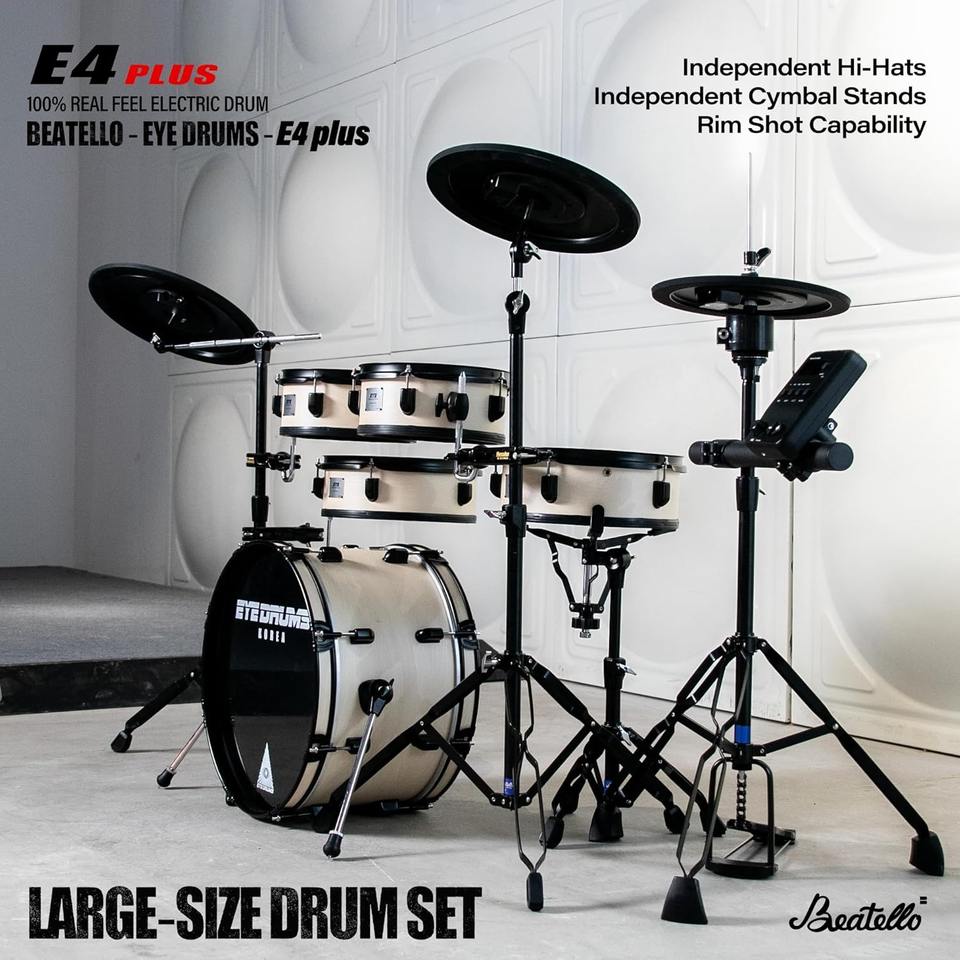 ชุดกลองไฟฟ้าขนาดเต็มสำหรับผู้ใหญ่, 5 กลองและ 3 ฉาบ, บันทึกเสียงผ่าน USB MIDI, โครงสร้างไม้, หน้ากลองแบบตาข่าย, กลองอะคูสติก