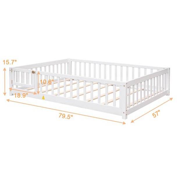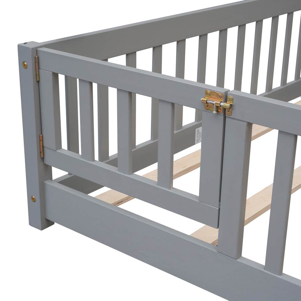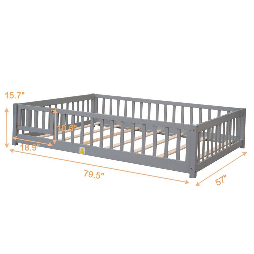 โครงเตียงพื้นขนาดเต็มสําหรับเด็กเตียงพื้นไม้มอนเตสซอรี่พร้อมแผ่นรองรับรั้วสําหรับเด็กผลิตจากเวียดนาม