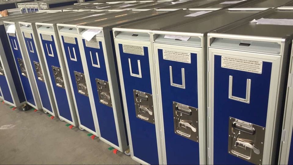 รถเข็นอาหารบนเครื่องบินขนาดเต็มสำหรับบริการอาหารบนเครื่องบิน