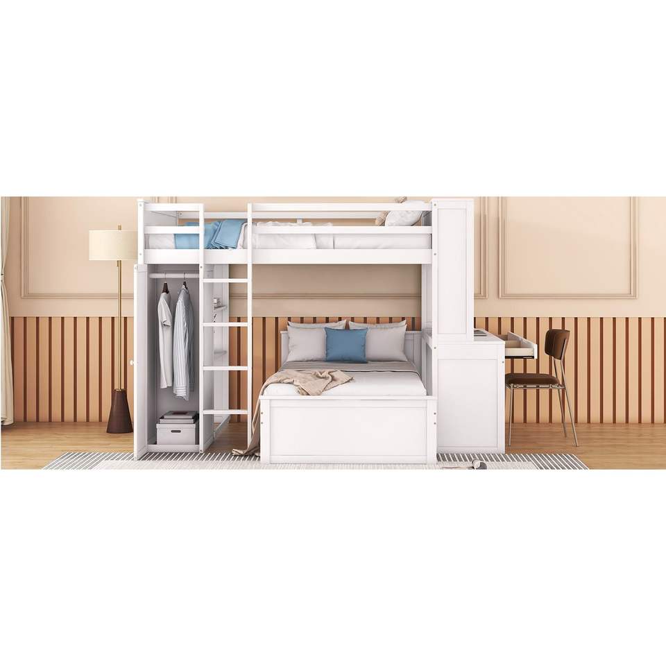 เตียงลอฟท์ขนาดเต็มพร้อมเตียงแฝดแบบสแตนด์อโลนชั้นวางตู้เสื้อผ้าสำหรับเด็ก