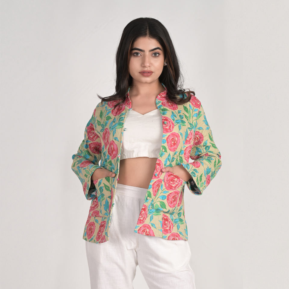 Indian cotton winter jackets:Handmade Cotton kantha Reversible Jackets