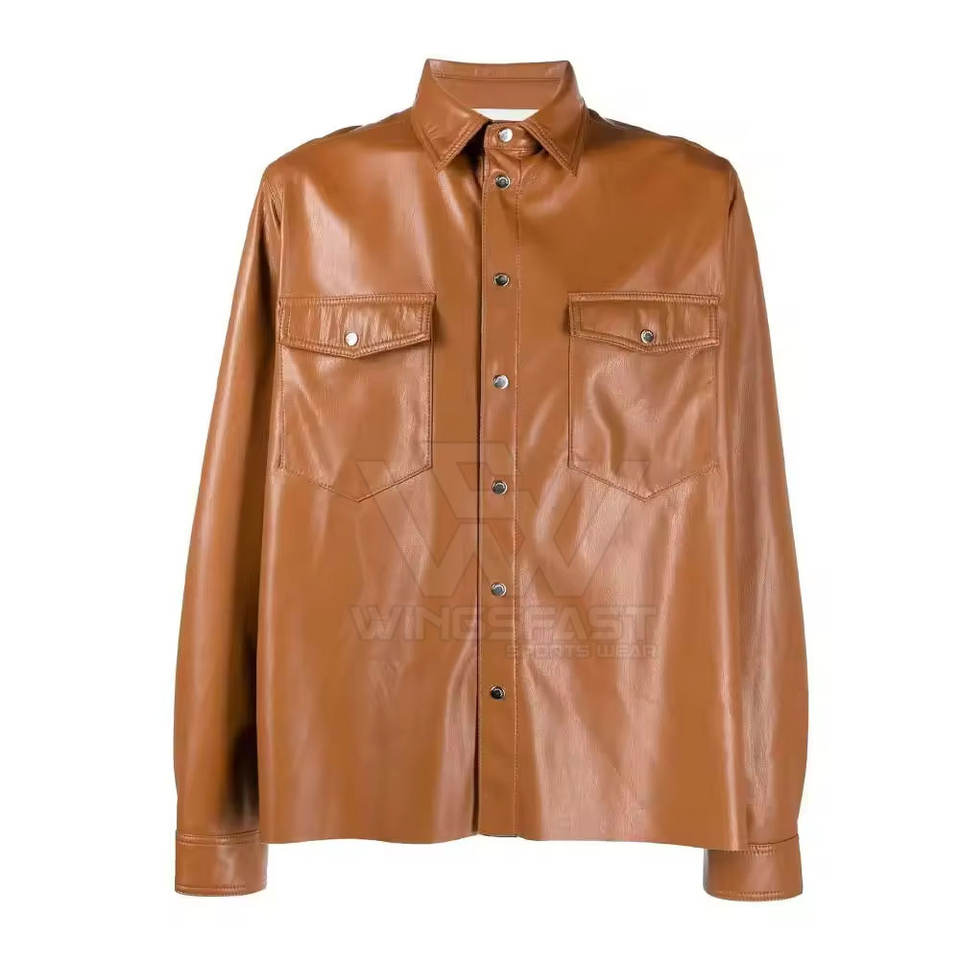 เสื้อเชิ้ตหนังแท้แขนยาวสำหรับผู้ชายเสื้อผลิตตามสั่งหนังแท้ดีไซน์ใหม่สำหรับผู้ชาย