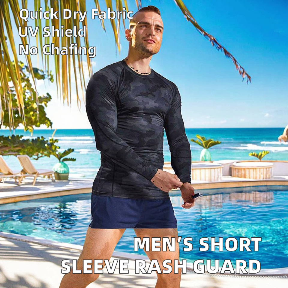 เสื้อแรชการ์ดแขนยาวคุณภาพสูงสำหรับผู้ชาย ป้องกันรังสียูวี แห้งเร็ว ป้องกันการเสียดสี ผลิตจากผ้าโพลีเอสเตอร์/ไนลอน สำหรับเล่นกีฬา